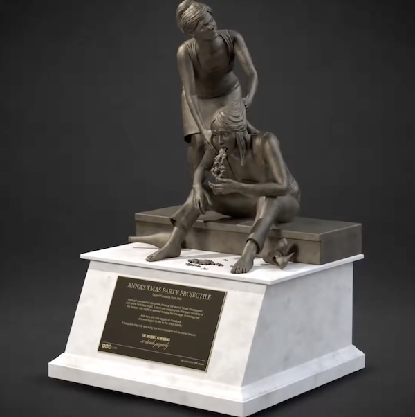 Eng “The creative idea: to repurpose or hijack bronze statues to depict people vomiting. The two executions are slightly different (using a fountain is quite an amusing improvement), but the concept is really similar. Copy, coincidence, or none of the above? Be the judge!”
