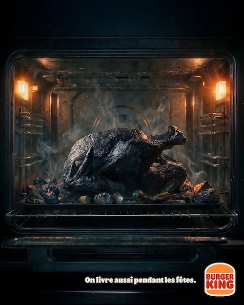 LESS ORIGINAL Burger King – 2025 « We also deliver during the holiday season » Source : Dans Ta Pub Agency : Buzzman (France) |