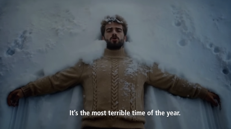 Fr « L'idée créative : sur le refrain de la célèbre chanson "It's the most wonderful time of the year" les spots mettent en scène comme un total contre-pied, une somme de galères, de glissades et autres mésaventures vécues par des familles à noël. Copie ou coïncidence? À vous de juger! »