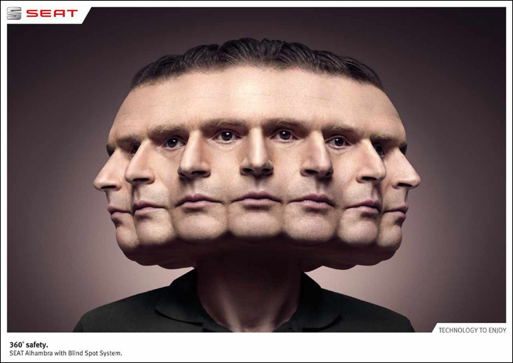 “If you have a 360° view on the world of advertising (as I do) you would immediately notice that this idea was done last year. I just spotted one tiny difference : the first one shows seven heads while the second displays eight!”