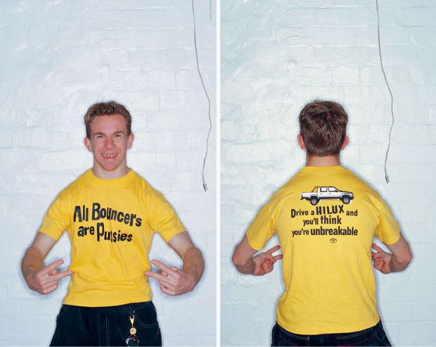 | THE ORIGINAL? Toyota Hilux – 2004 Headline : « All Bouncers are pussies / Drive a Hilux and you’ll think you’re unbreakable » Source : Cannes Press SHORTLIST, Agency : Saatchi & Saatchi Sydney (Australia) |