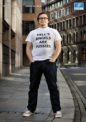 LESS ORIGINAL Essilor Airwear Lenses – 2011 Headline : « Hell’s Angels are pussies / Airwear lenses : Unbreakable » Source : Adsoftheworld Agency : Herezie Paris (France) |