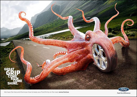 LESS ORIGINAL Ford « Great grip come rain come shine » – 2011 Source : Adsoftheworld Agency : Dedicate Gothenburg (Sweden) |