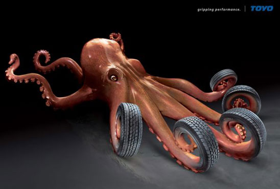 | THE ORIGINAL? Toyo Tires « gripping performance » – 2008 Source : Adsoftheworld Agency : GMASCO, Dubai, (UAE) |