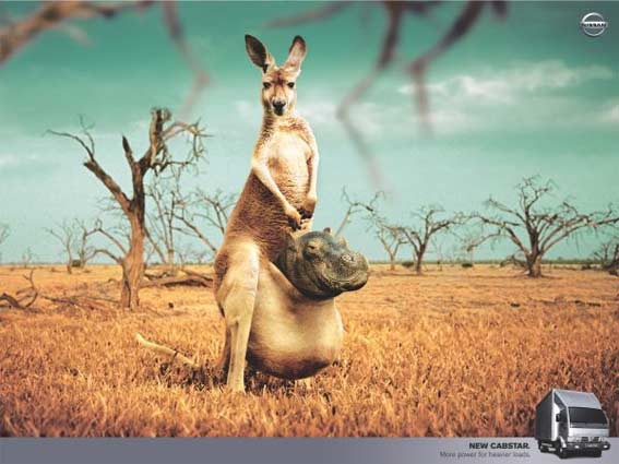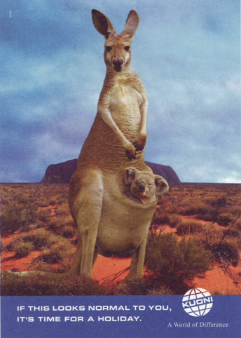 « Le petit détail qui craint c'est que non seulement c'est la même idée, mais qu'en plus ils sont partis de la même photo stock de kangourou (detourée et changée de decor sur la 2e). »