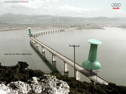 LESS ORIGINAL Audi Q7 with GPS « the route is marked » – 2007 Source : Adsoftheworld, Agency : Sepia (Chile) |