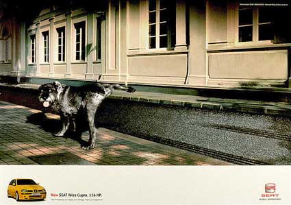 Regardez bien l’annonce de gauche. Puis celle de droite. Puis celle de gauche. Puis celle de droite etc… et cherchez les 7 erreurs. (il y a de quoi finir comme le chien). Une même agence (DDB) qui vend 2 fois la même idée la même année au même client… bref une idée…pour le prix de deux!