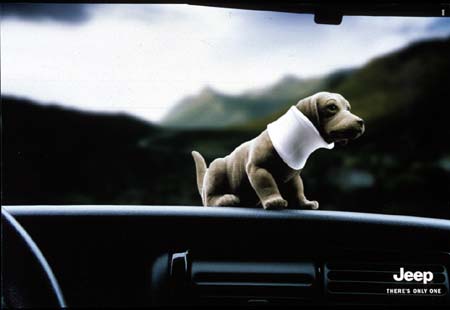 Quand on voit la signature Jeep : « there’s only one » on ne peut pas s’empecher de laisser s’échapper un « ouaf, ouaf, ouaf!!! ». Une bonne vieille copie qui rafle une médaille d’or aux New York Festivals… là quand même y’a un os.