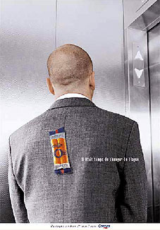 « Encore un "dérivé" du poisson collé par derrière... Même ressort, même idée, même exécution. S'il y a un comique que cette annonce emploie à plein, c'est le comique "de répétition". Sauf que des canulars de 1er avril qui se ressemblent tous on est comme le mannequin de cette annonce, on en a plein le dos! »
