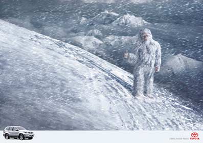 Voilà une idée identique, copiée au poil de cul de yeti près, et par une agence du même groupe qui plus est. Contrairement au Yéti certains ne sont pas tout blancs dans cette affaire…bref une abominable pompe des neiges.