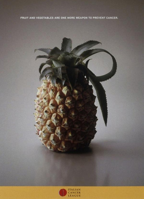 LESS ORIGINAL Italian Cancer League – 2002 “One more weapon to prevent cancer » Source : Coloribus Agency : JWT (Italy) |