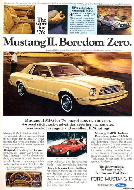 THE ORIGINAL? Ford Mustang II – 1976 “Mustang II. Boredom zero” Agency : Unknown (USA)